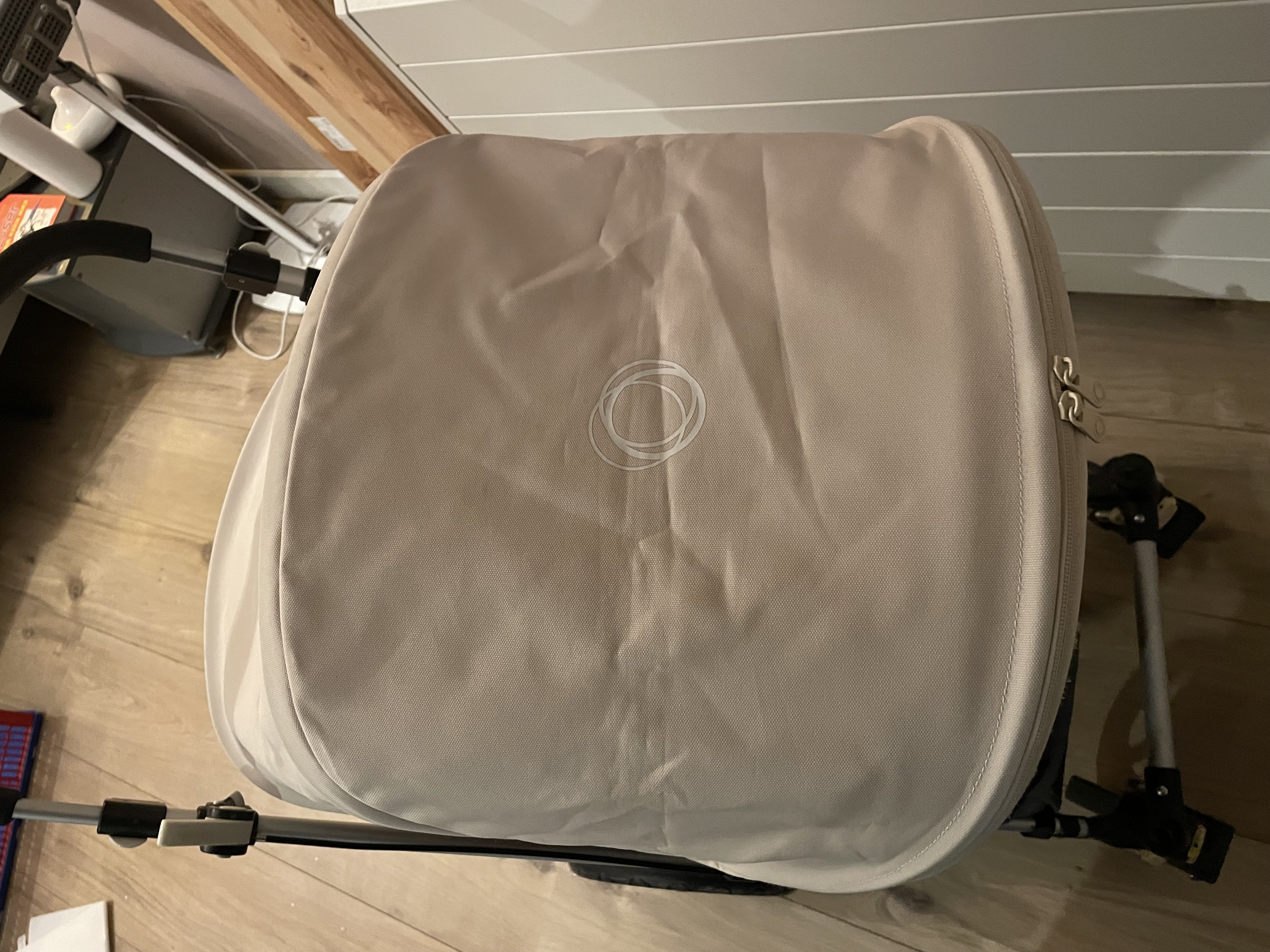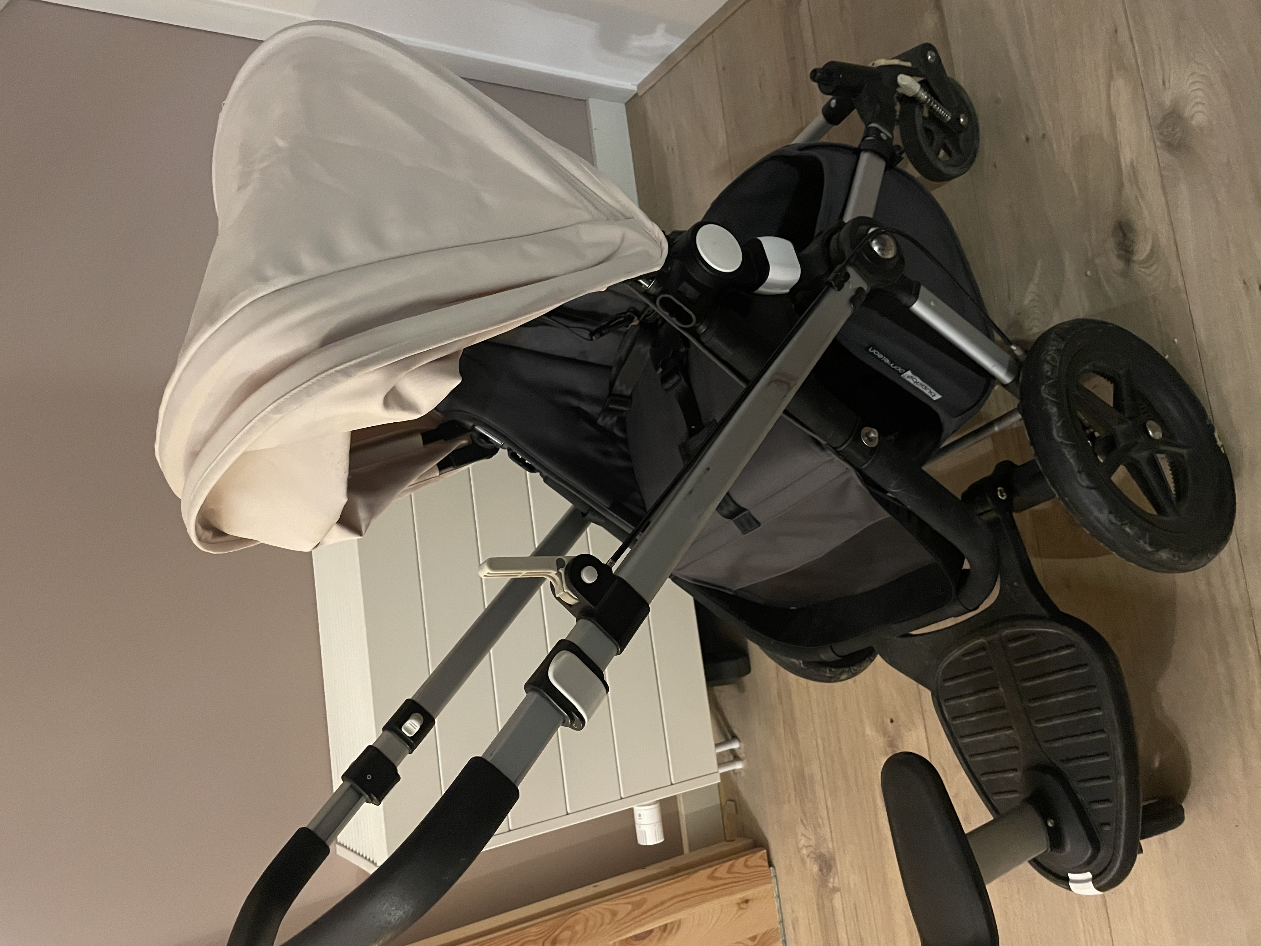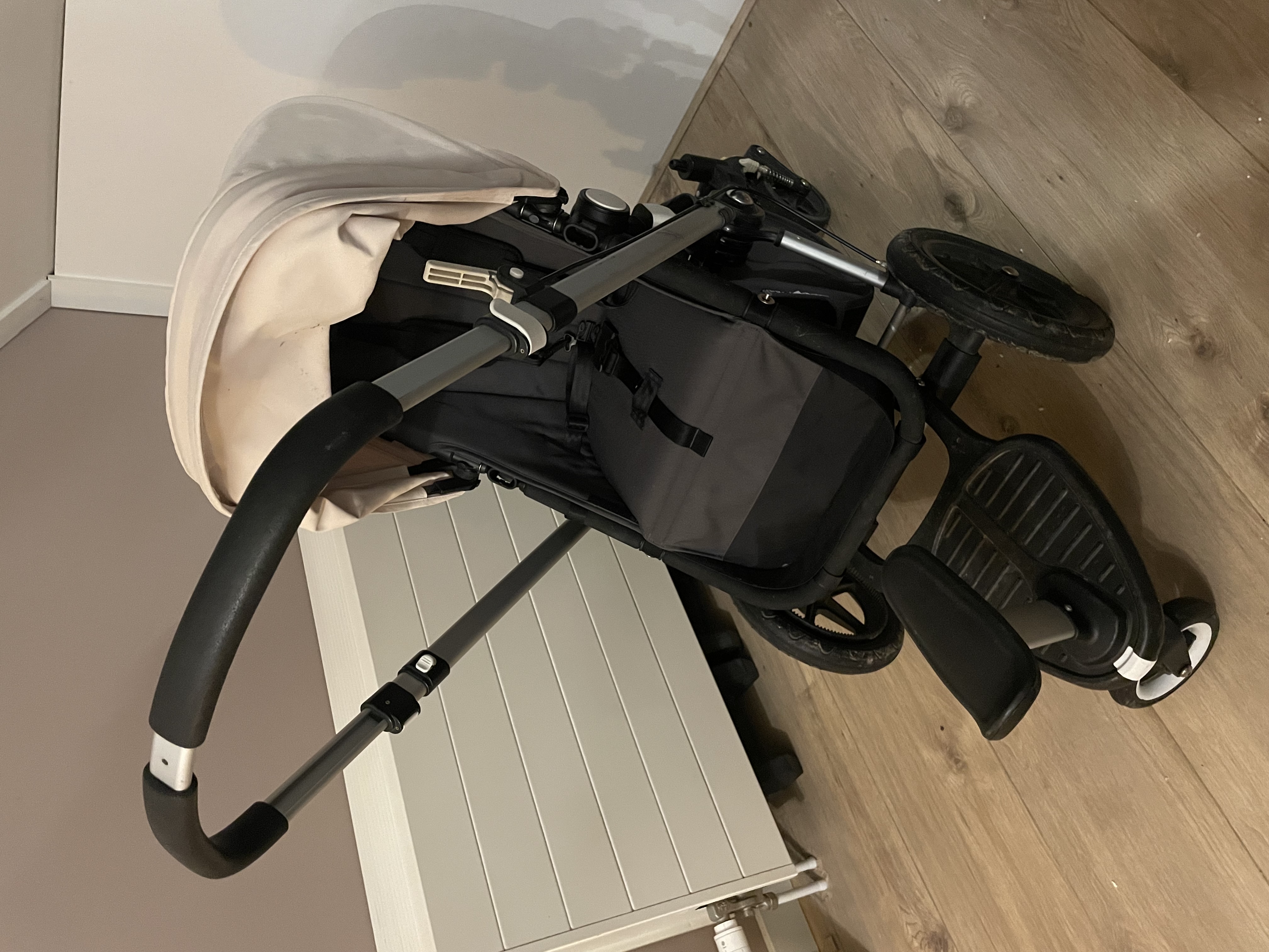 De wagen zelf is tweedehands, maar we hebben de wielen, kap, stoffering en opbergruimte recent nieuw gekocht. Net als het zitje. Ons kleintje is eruit gegroeid.