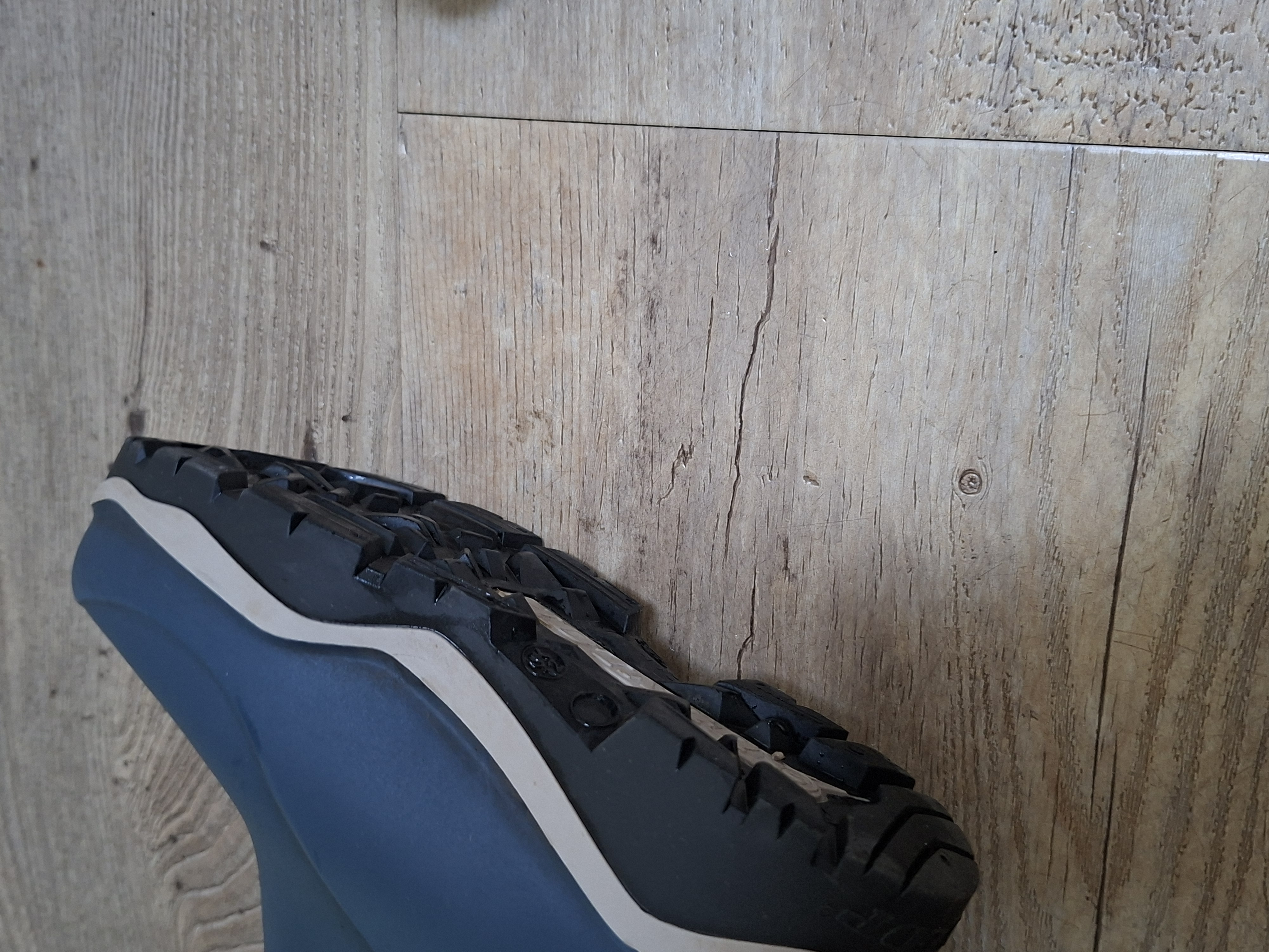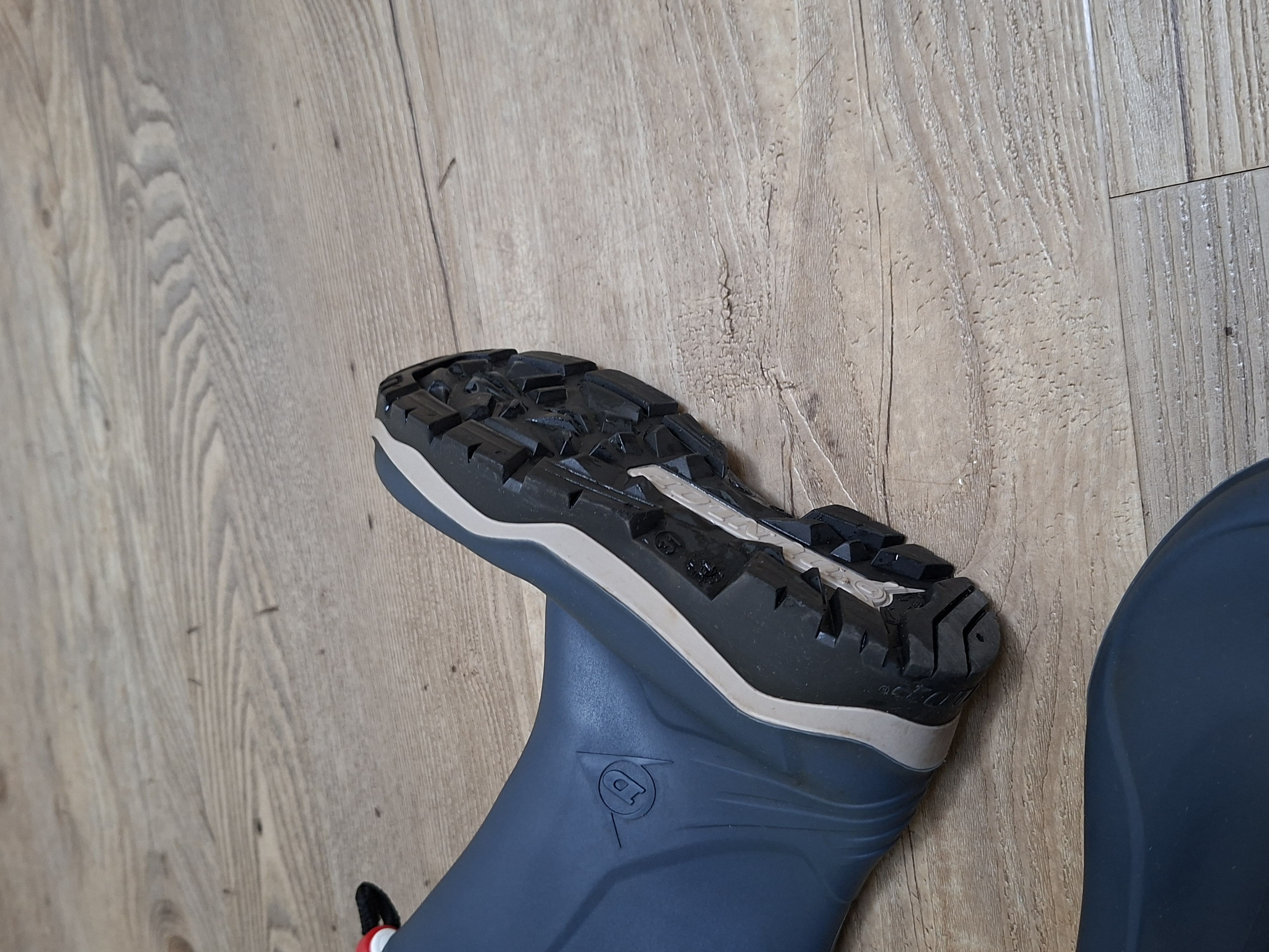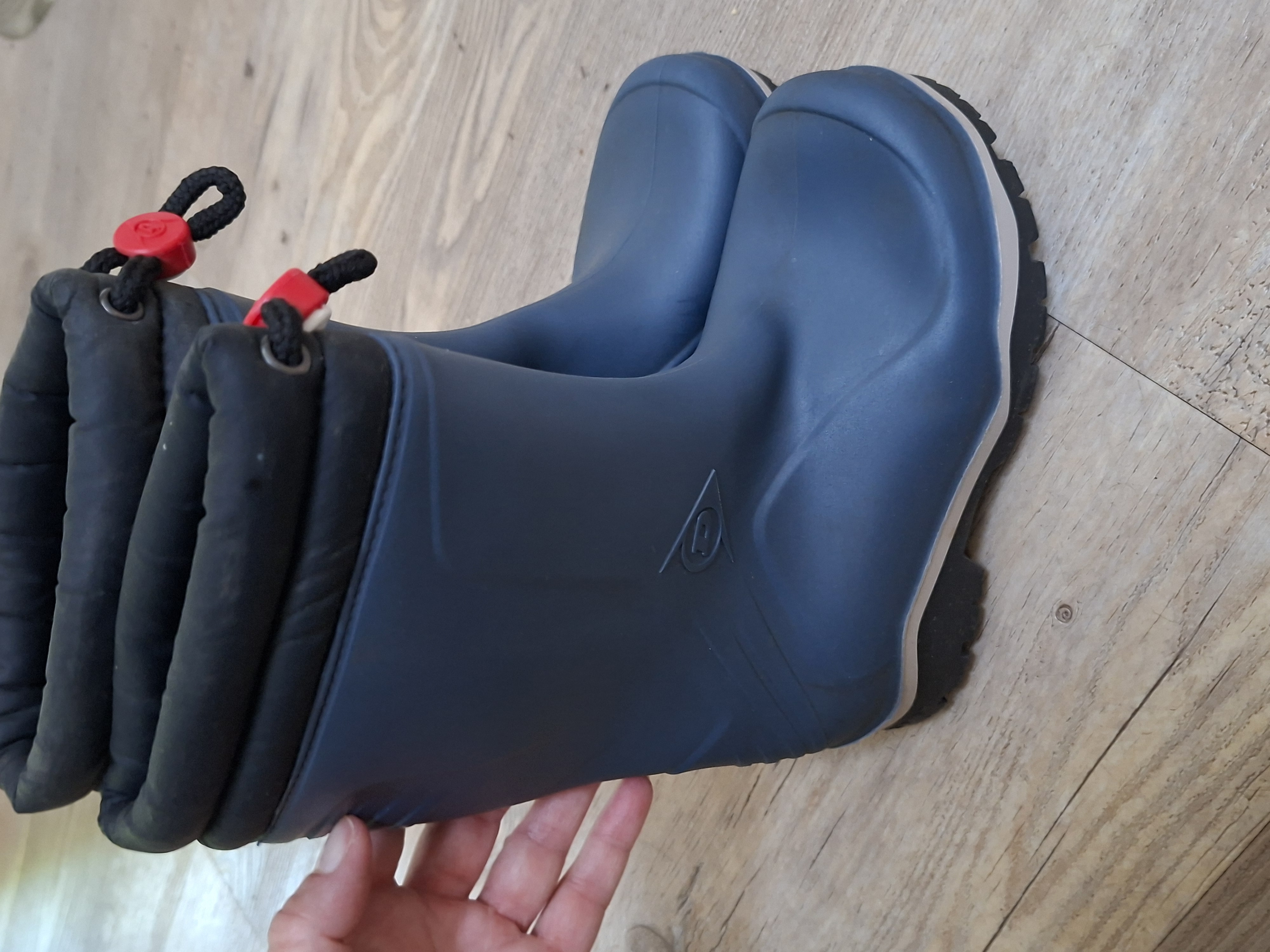Zo goed als nieuw! Deze blauwe Dunlop regenlaarzen zijn ideaal voor de koude dagen en houden de voeten warm tot -15 °C. De laarzen zijn gemaakt van PU. Ter decoratie zijn er merkopdrukken, een lichtgekleurde band langs de zool en een rode bevestigingsclip aan het trekkoord aangebracht. Door middel van het trekkoord kan je de schachtwijdte aan de bovenkant verstellen naar wens. Hierdoor bescherm je je voeten tegen de koude lucht. De zool is ook gemaakt van PU en heeft een dikte van 3 centimeter. Het profiel in de zool zorgt ervoor dat je grip houdt. Goed om te weten: het voetbed van deze blauwe Dunlop regenlaarzen is niet uitneembaar.