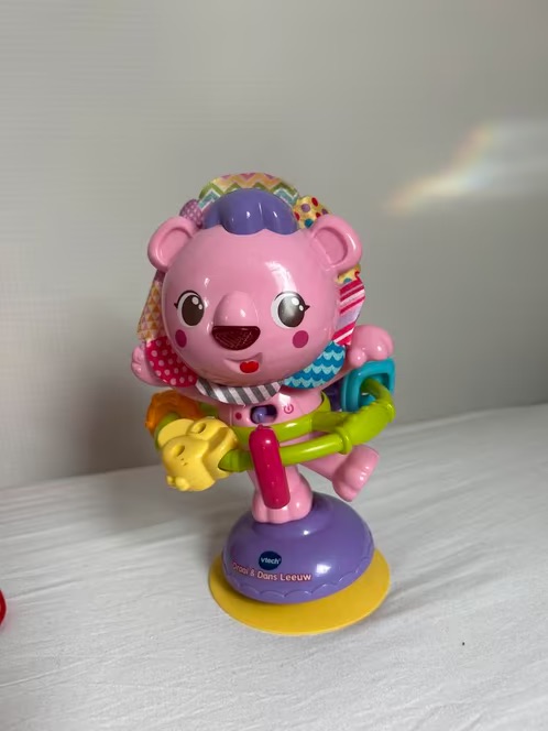 Leuke Vtech Draai & Dans Leeuw, amper mee gespeeld. Interactief speelgoed voor baby's en peuters. Stimuleert de motoriek en zintuigen. Met vrolijke muziek en geluiden. Geschikt voor kinderen vanaf 6 maanden.