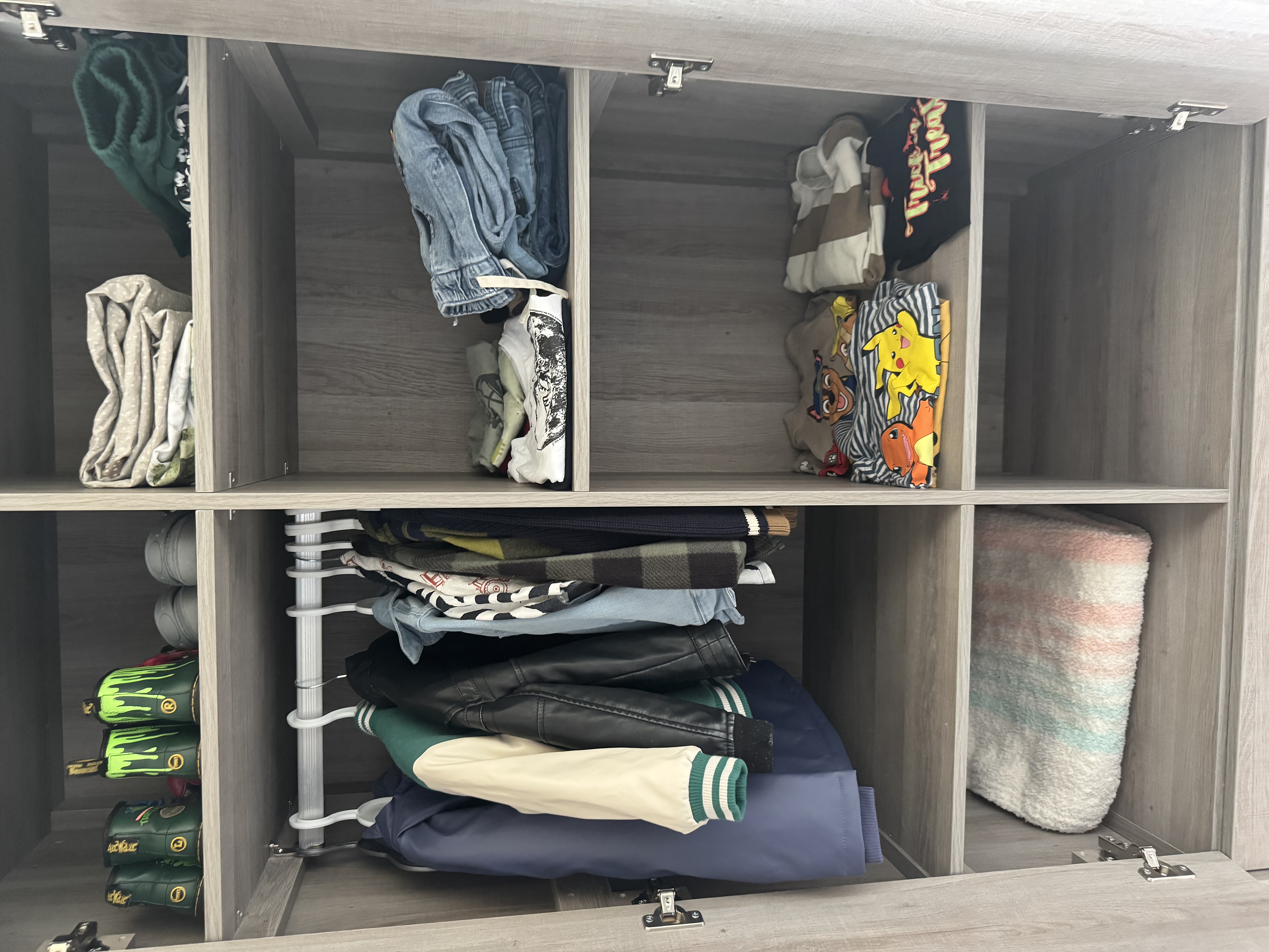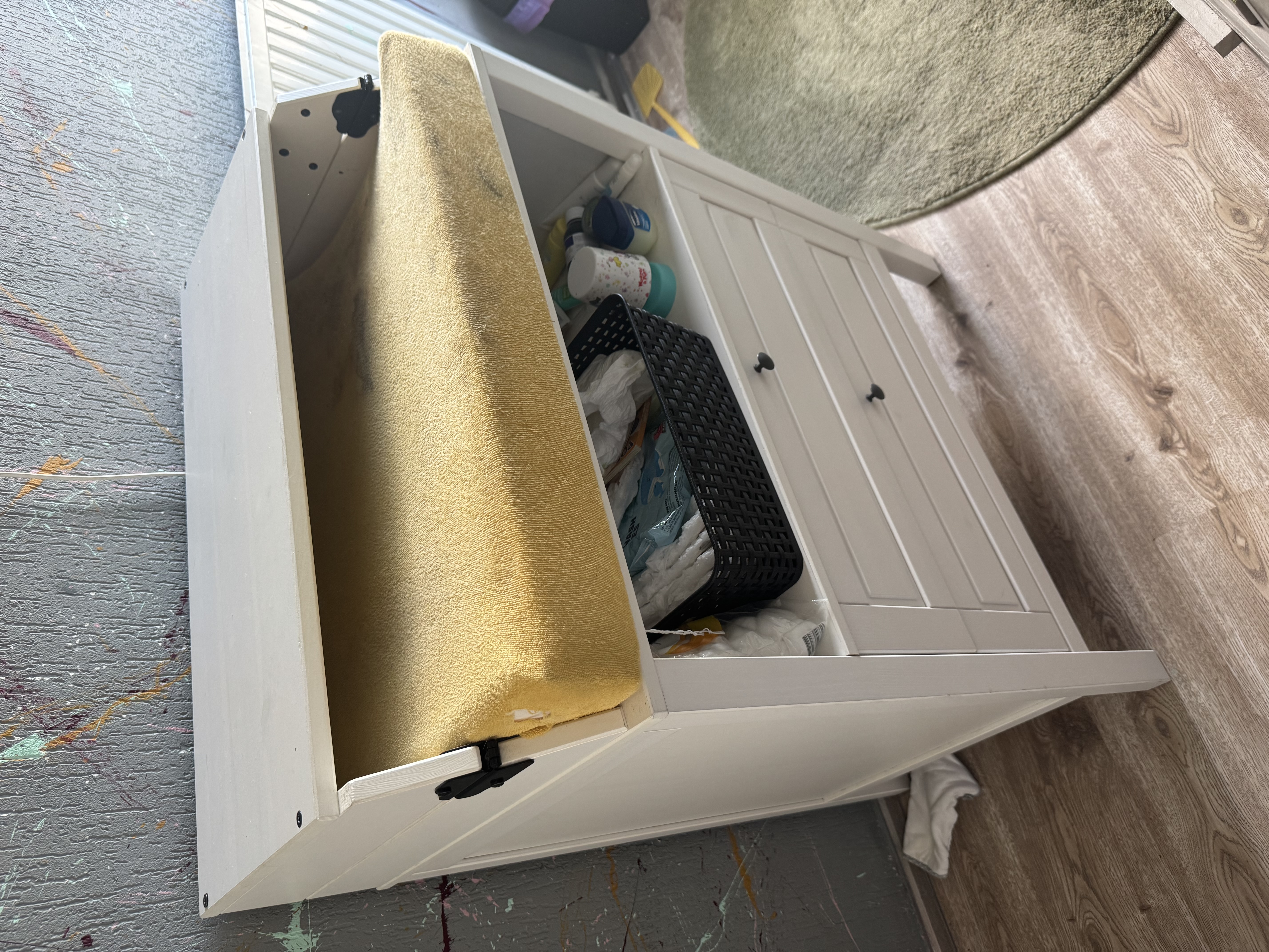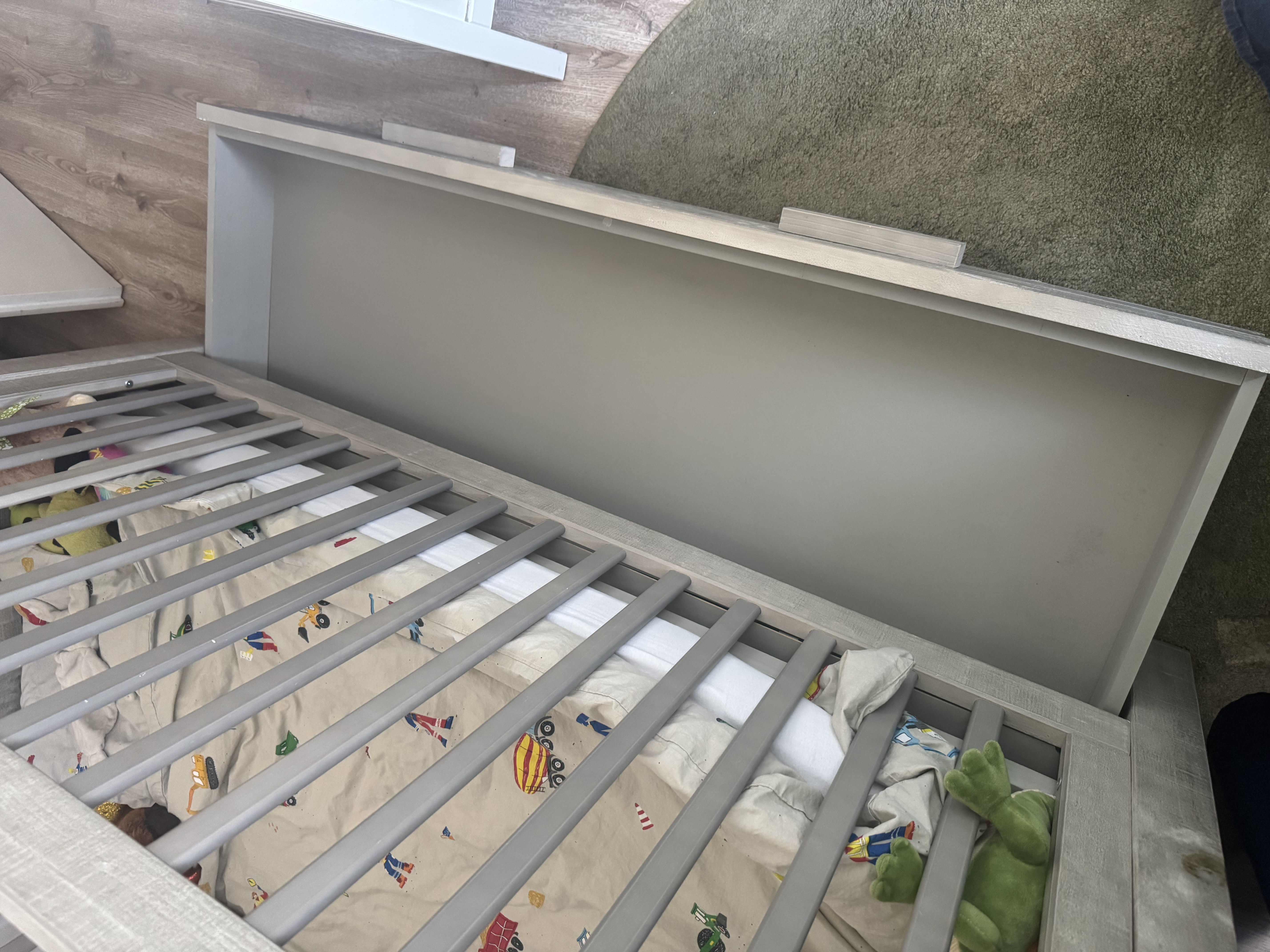 Vanwege dat mijn zoontje uit zijn bedje begint te groeien verkoop ik deze mooie mee groei bed (70x140) met bij passende kast en commode met kussen.