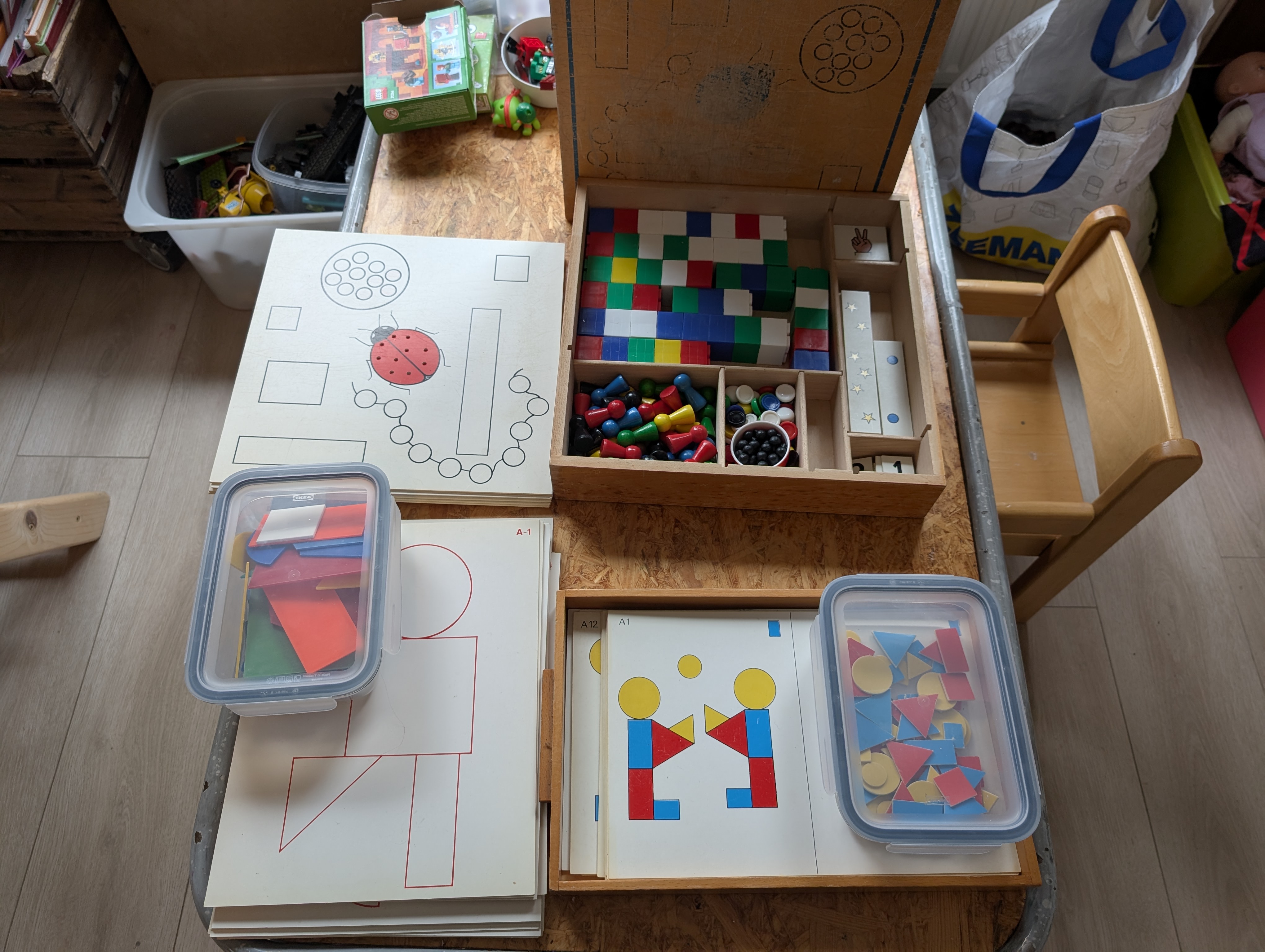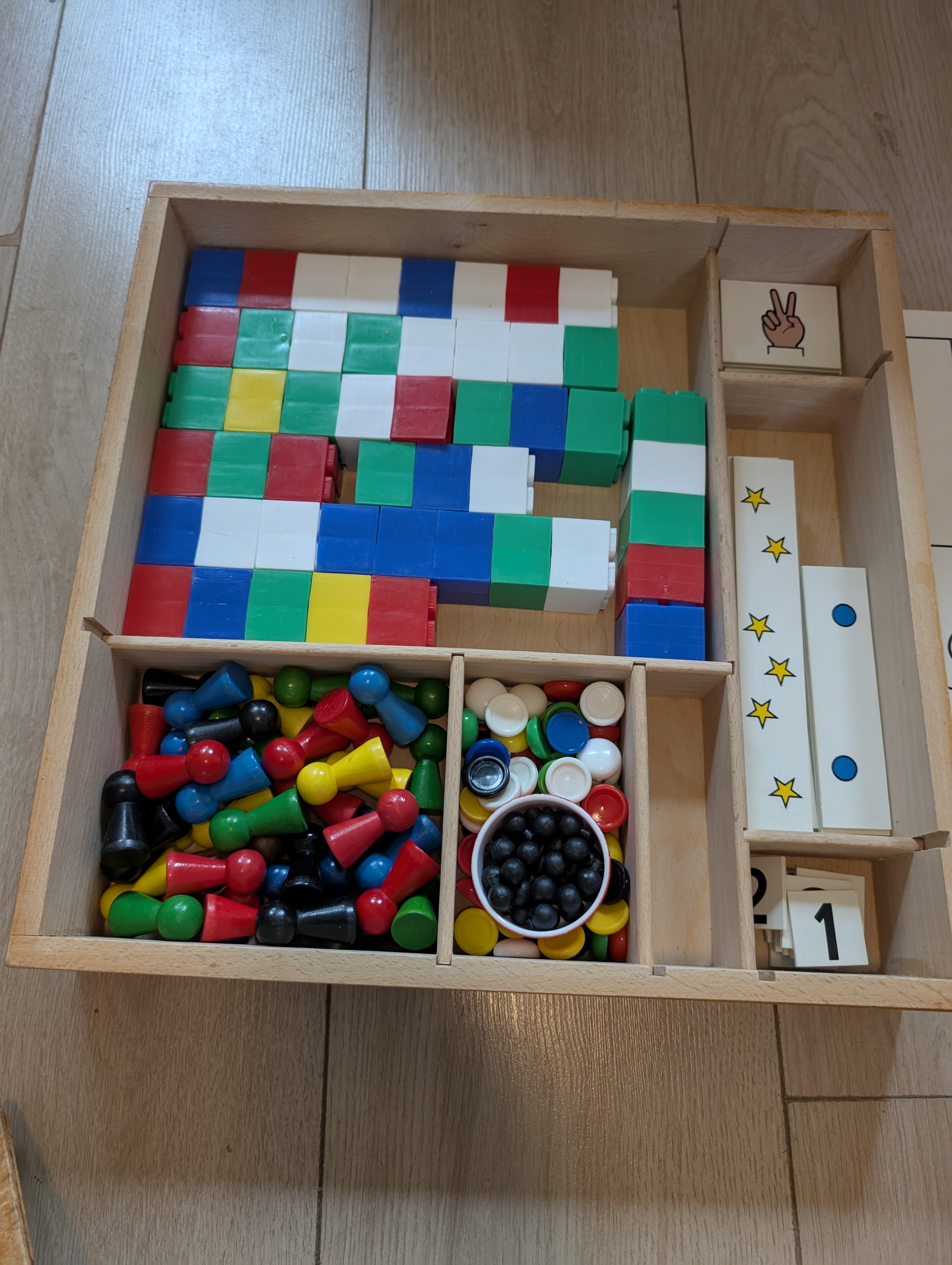 Een nog complete vintage set van Rolf. Leren tellen t/m 10, twee sets figuren met oplopende complexiteit. Hier veel mee gespeeld en geoefend. Aanrader voor thuis als je kindje al vroegtijdig geïnteresseerd is in getallen of graag uitgedaagd wil worden.