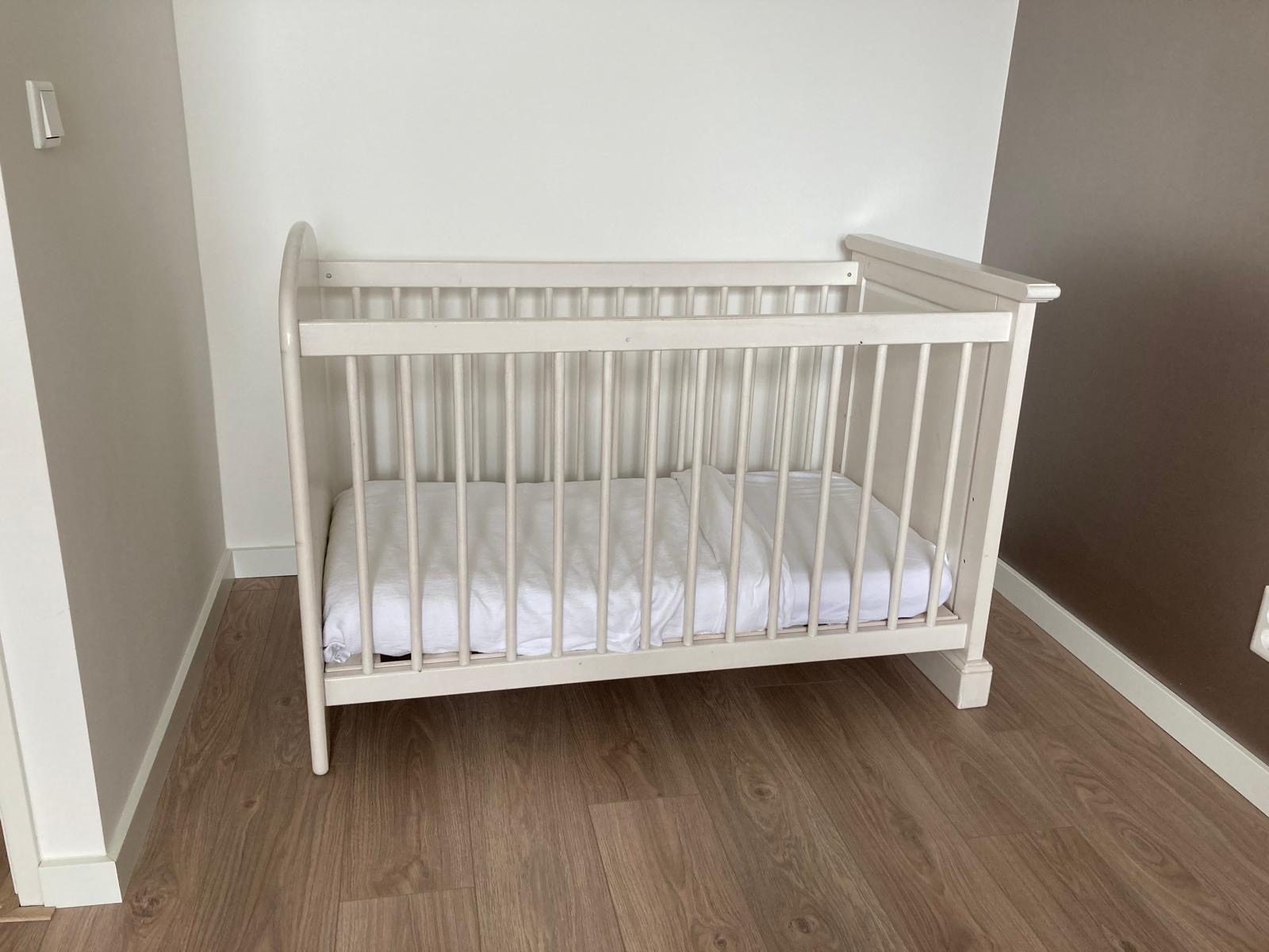 Het bedje is een standaard babybed. Eventueel is er een matras bij. Het ledikantje is al uit elkaar gehaald.