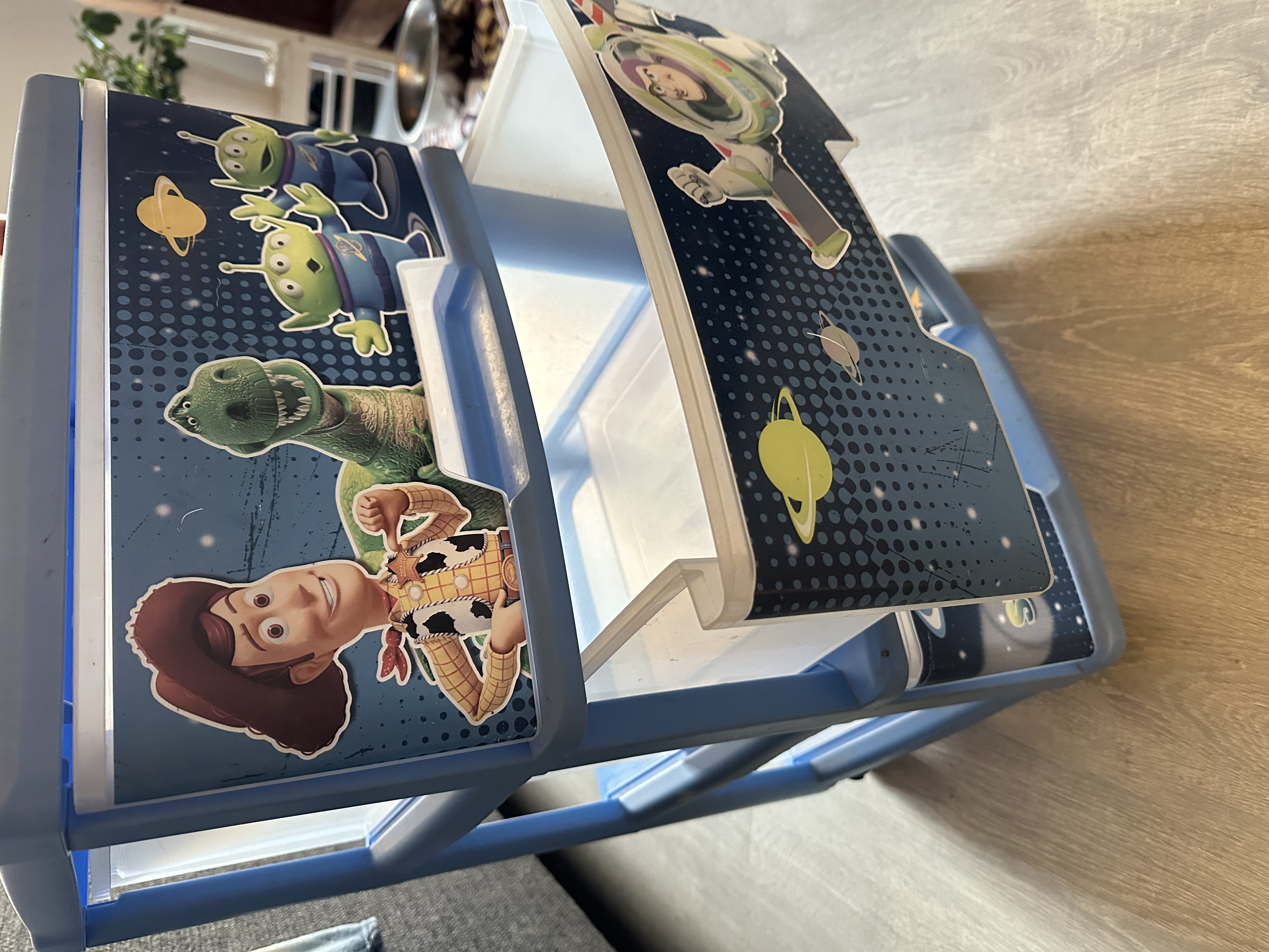 Leuk ladekastje van Toy Story, gemaakt van plastic. Heeft wieltjes. Ideaal voor kinderkamer om speelgoed of andere spullen in op te bergen.