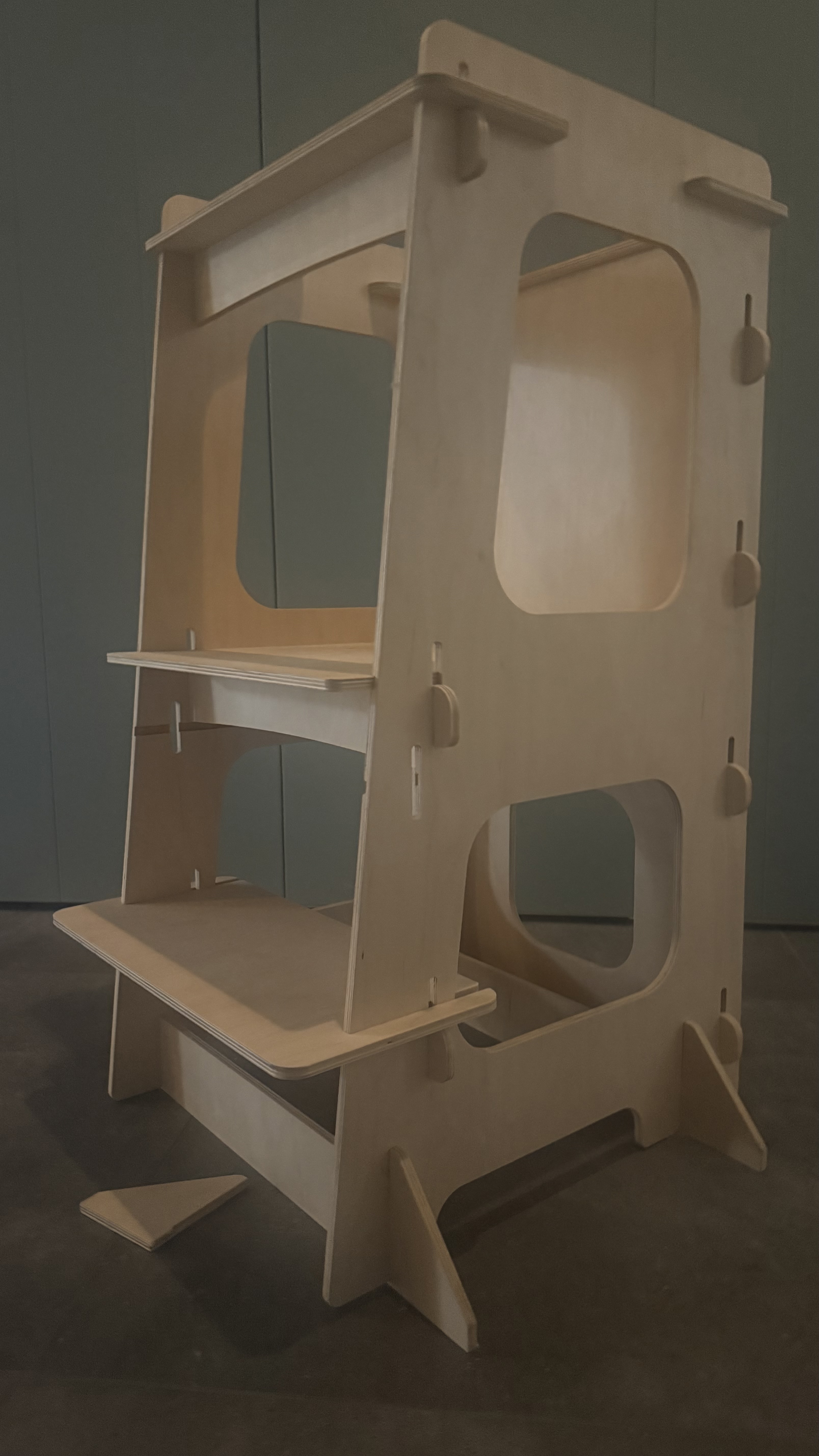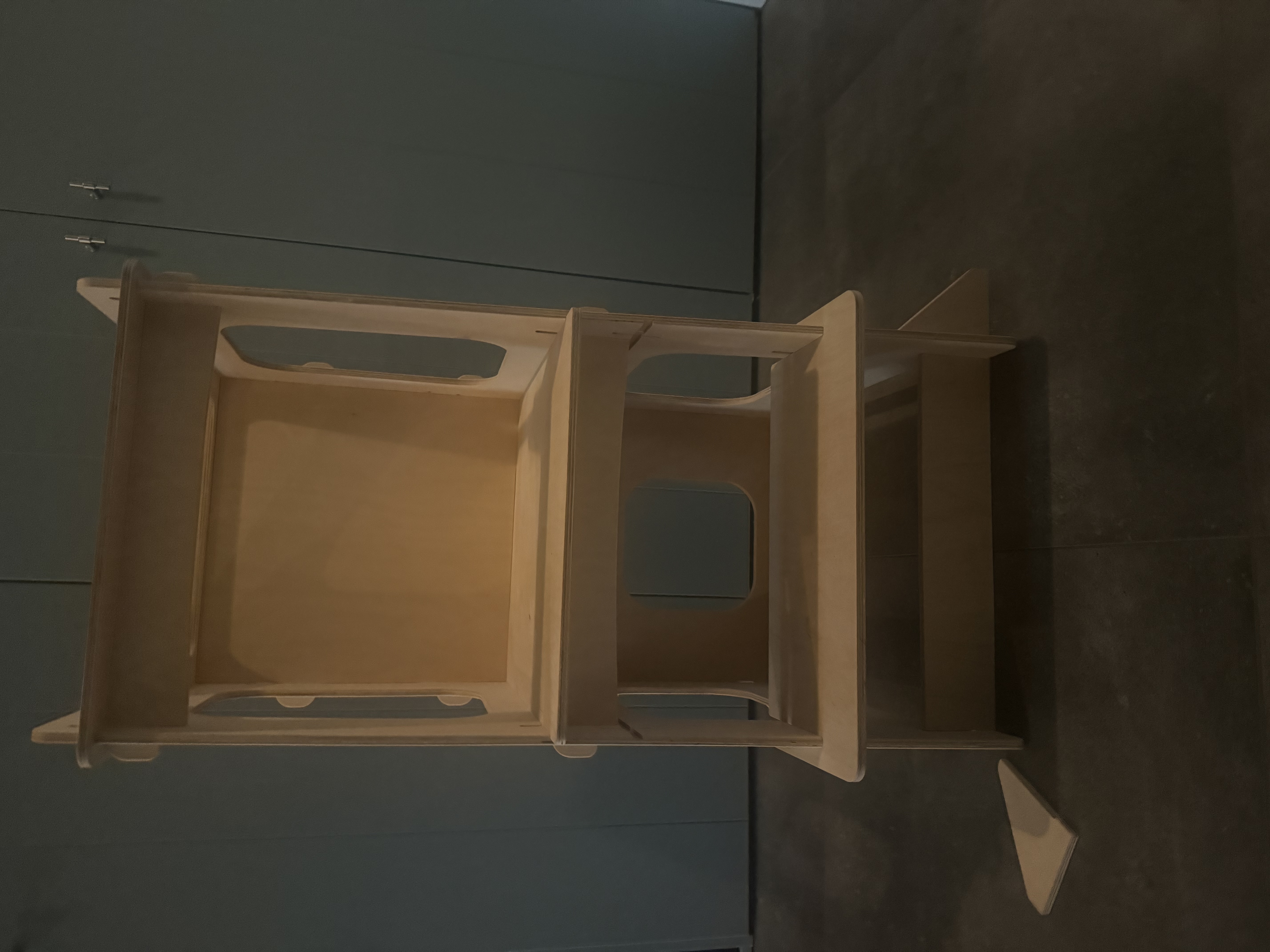 Demontabele houten leertoren. Niet vaak gedemonteerd. Solide houtverbindingen..beetje lastig los te krijgen.