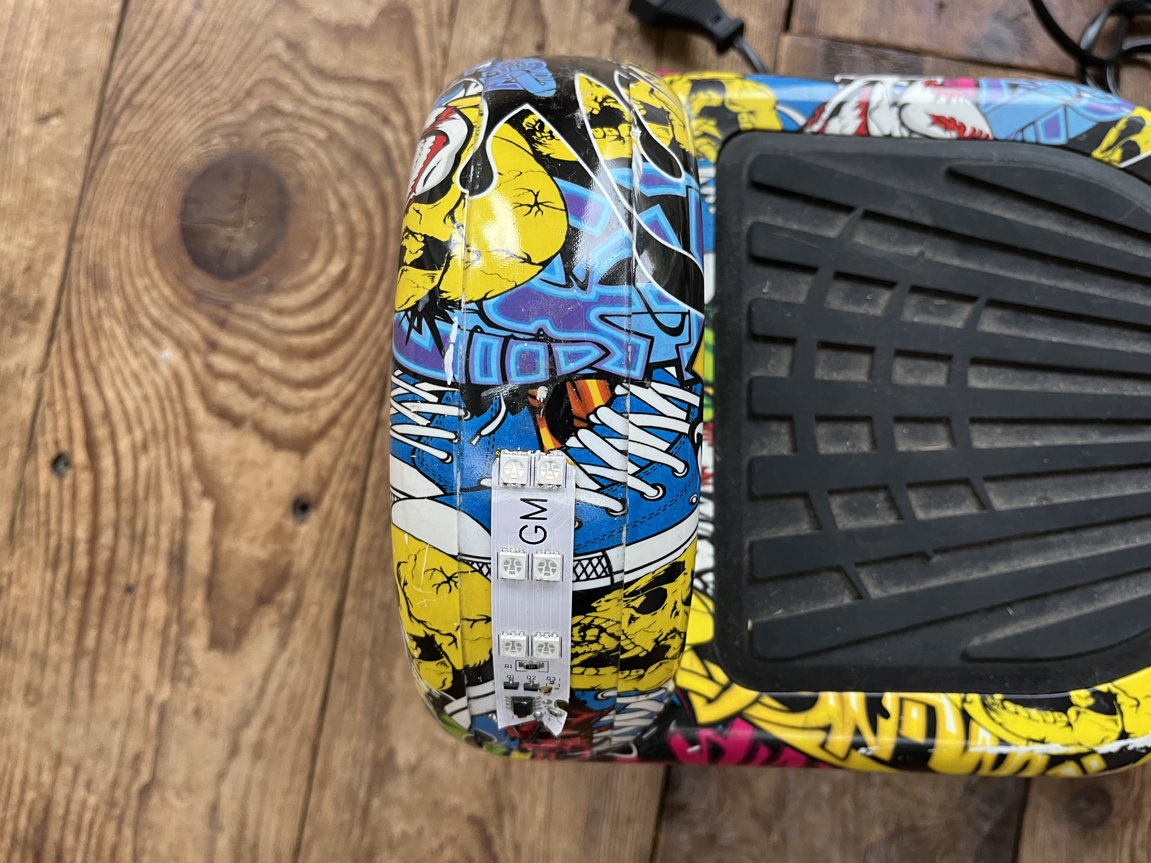 Verlichting op linkerwiel werkt niet omdat de strip eraf is (zie foto 3).