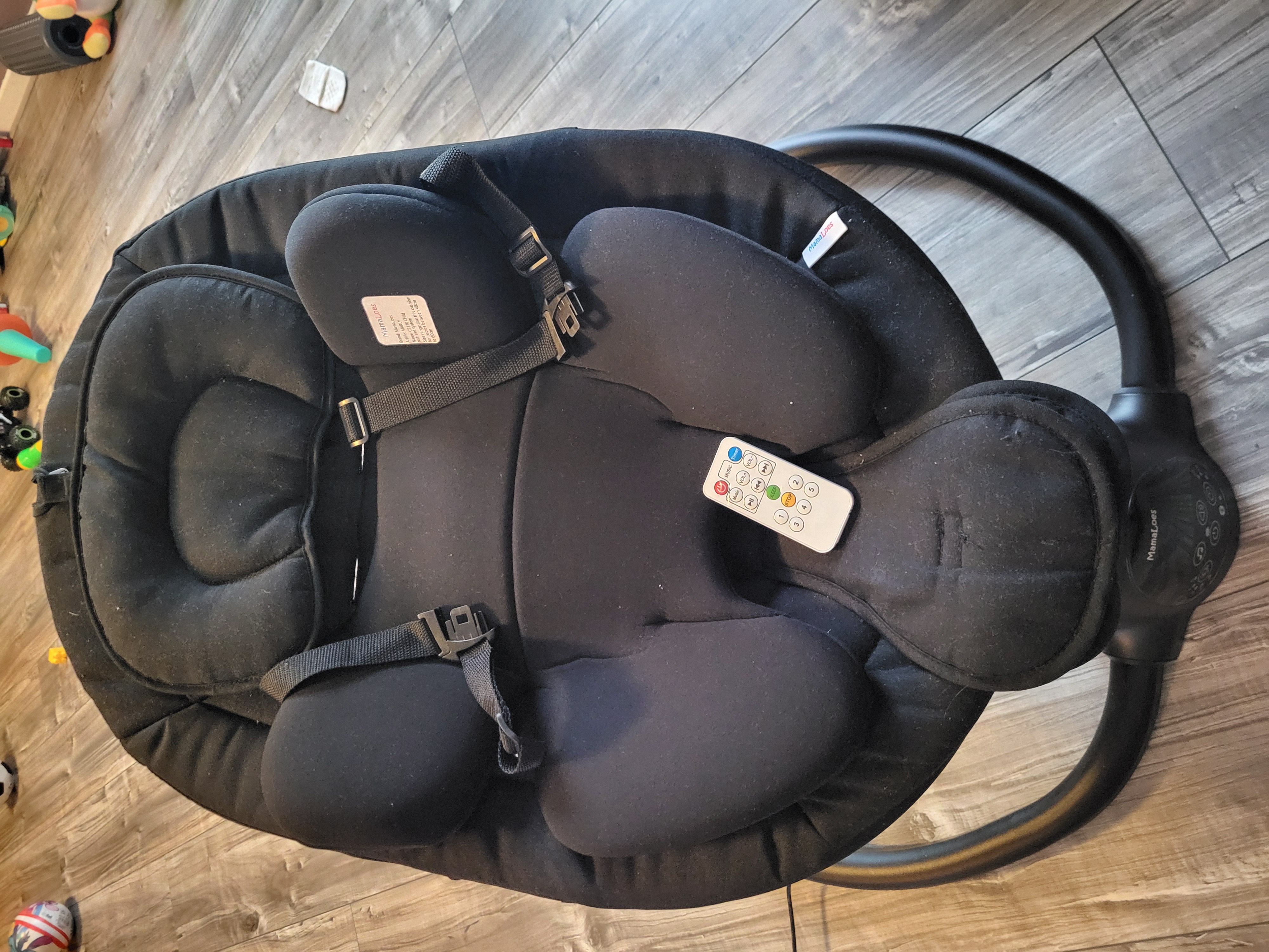 Wiegstoel met wiegfunctie, verschillende muziekjes waaronder rain sounds en slaapmuziekjes. Mogelijkheid om het met Bluetooth te verbinden en je eigen muziek af te spelen. 3 keer in gebruik geweest, dus zo goed als nieuw!