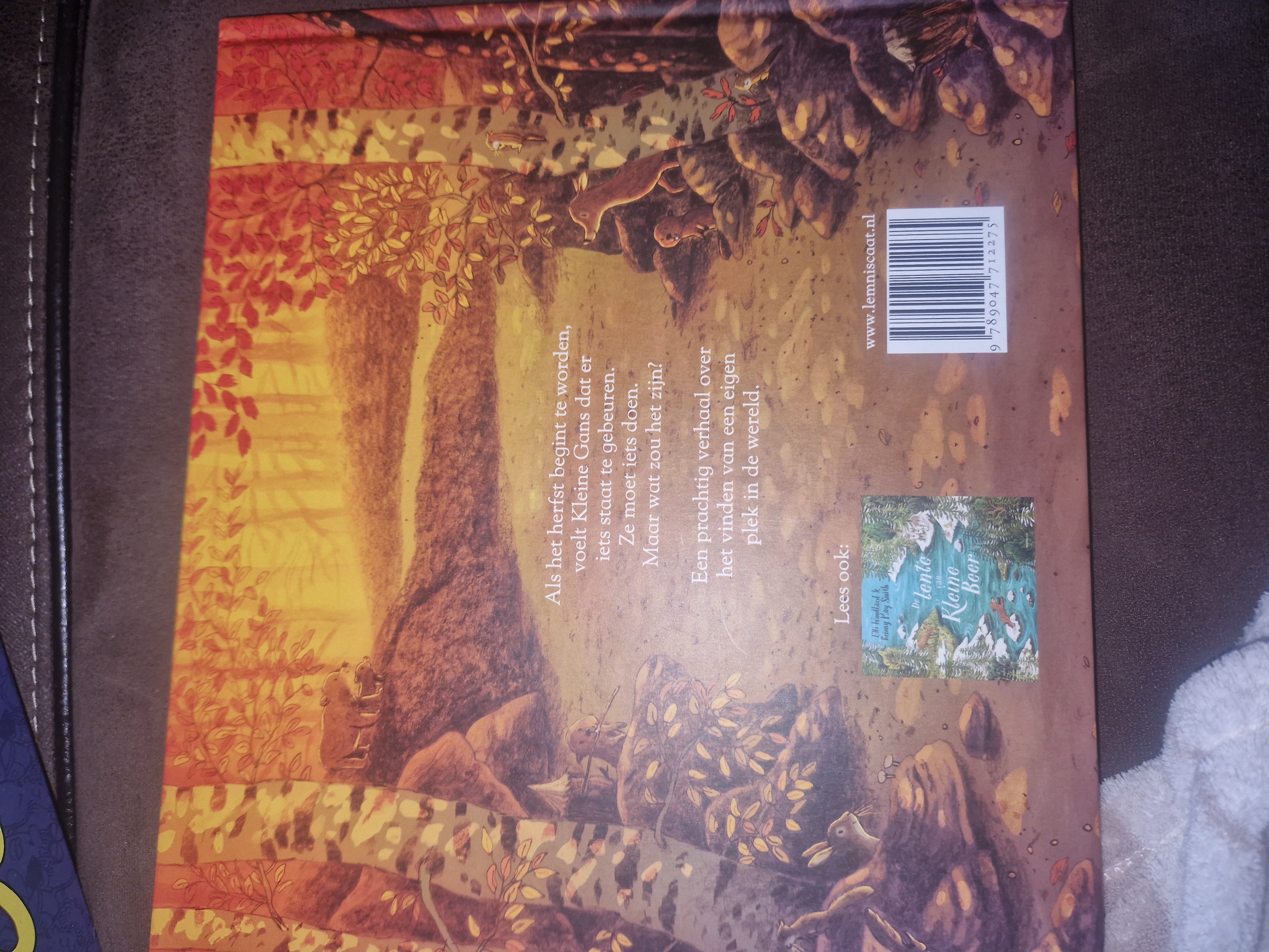 Het boek dat op de afbeelding wordt getoond, is "De herfst van Kleine Gans", geschreven door Elli Woollard en geïllustreerd door Briony May Smith. Het is een prentenboek dat in het Nederlands is vertaald door Jesse Goossens en uitgegeven door Lemniscaat.
