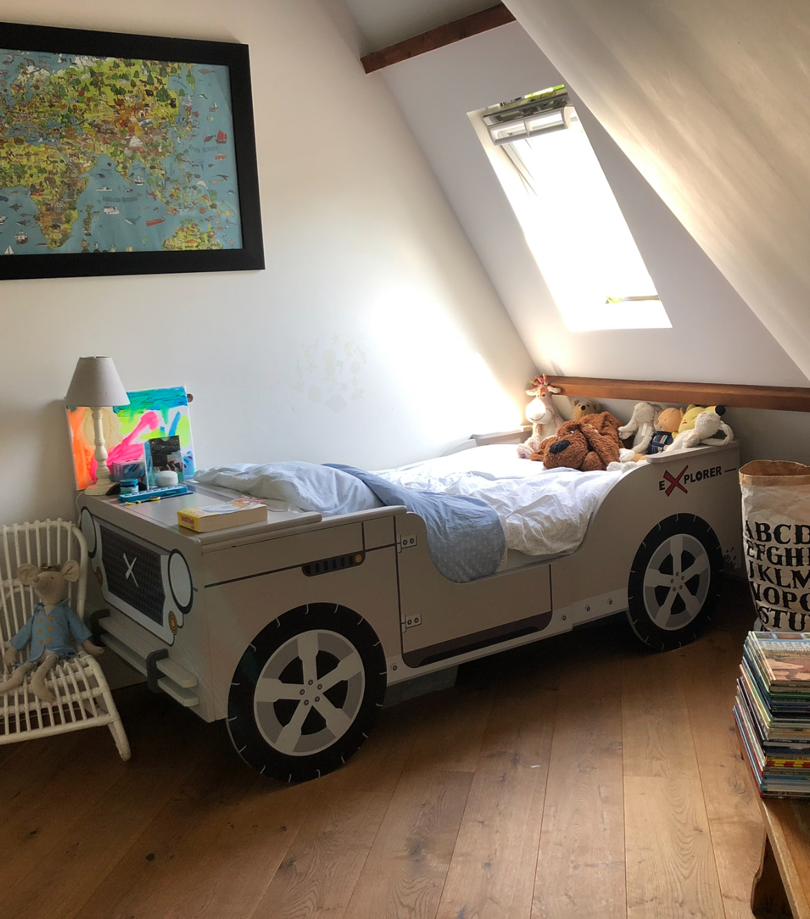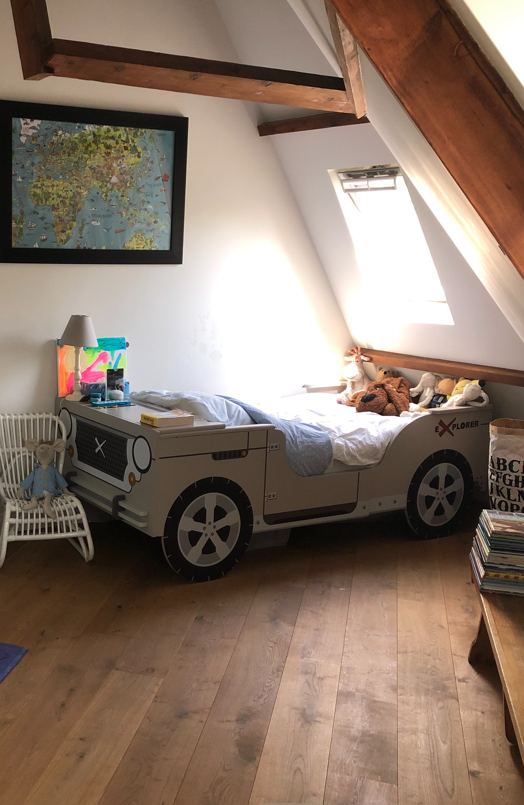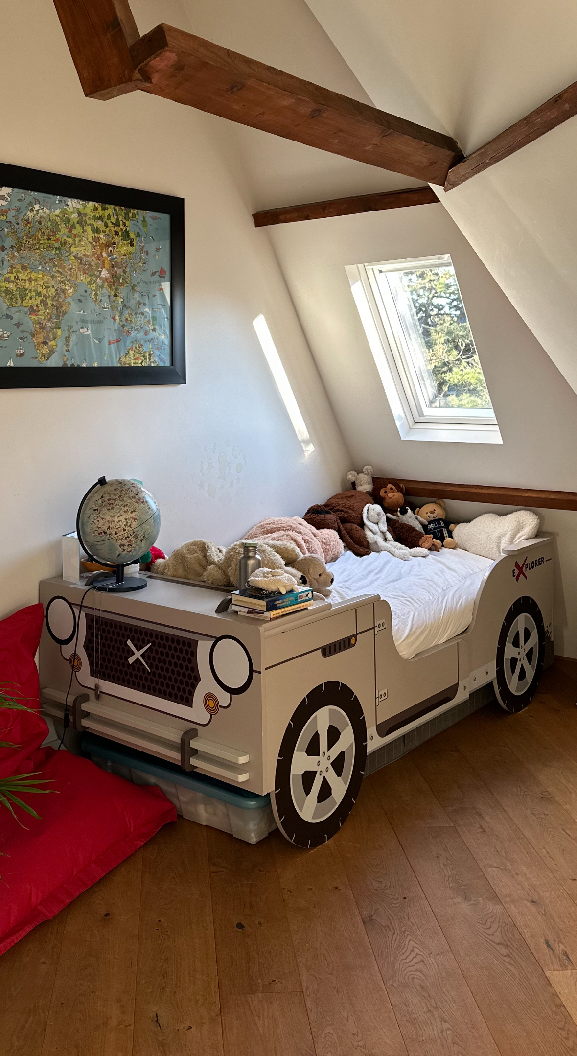 Onze zoon is helaas te groot geworden voor dit te gekke bed, maar heeft er heerlijk in geslapen.