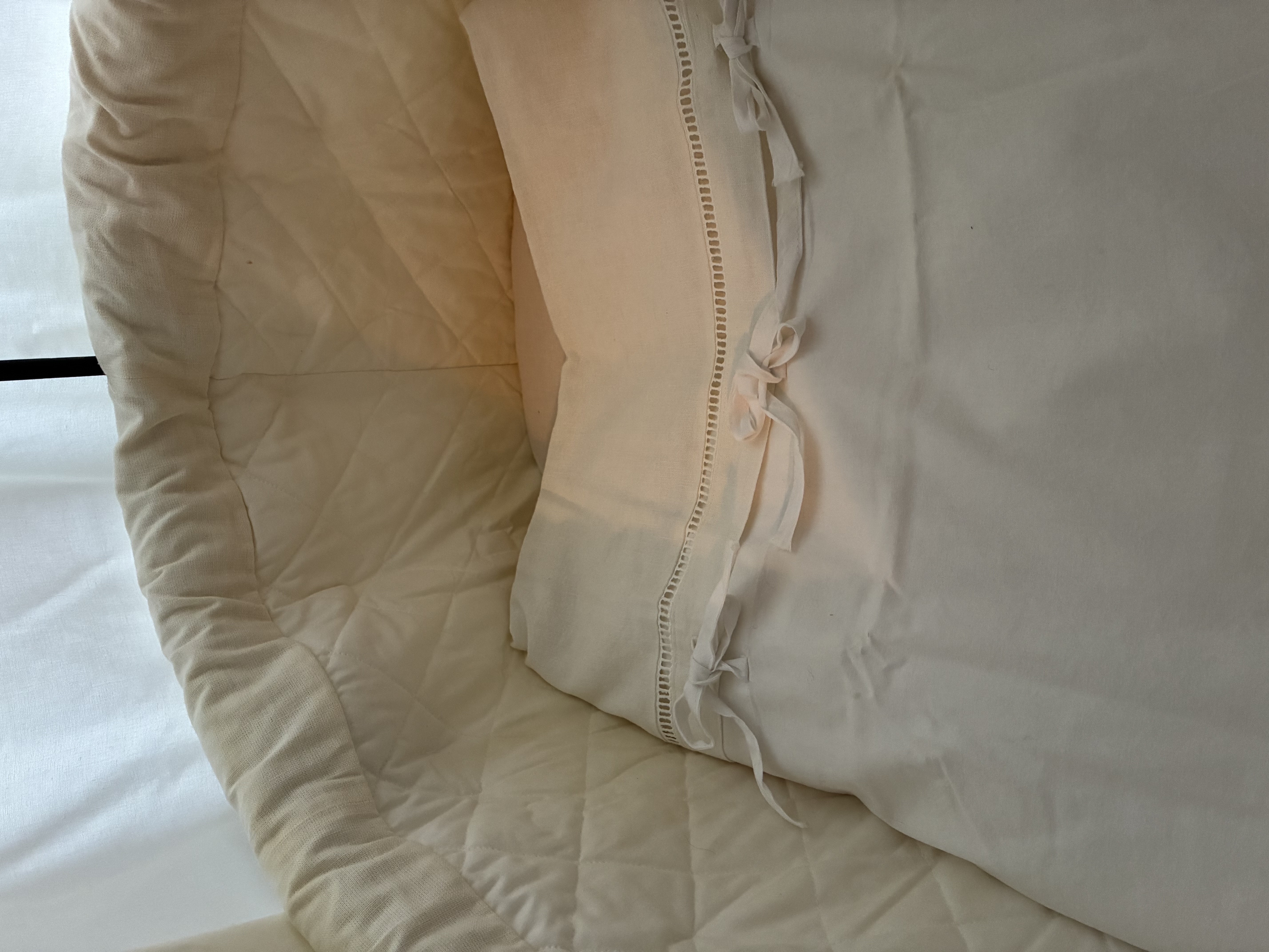 De wieg is afkomstig uit Frankrijk en heeft een elegante, klassieke uitstraling. Een echte blikvanger voor liefhebbers brocante of landelijke interieurs.