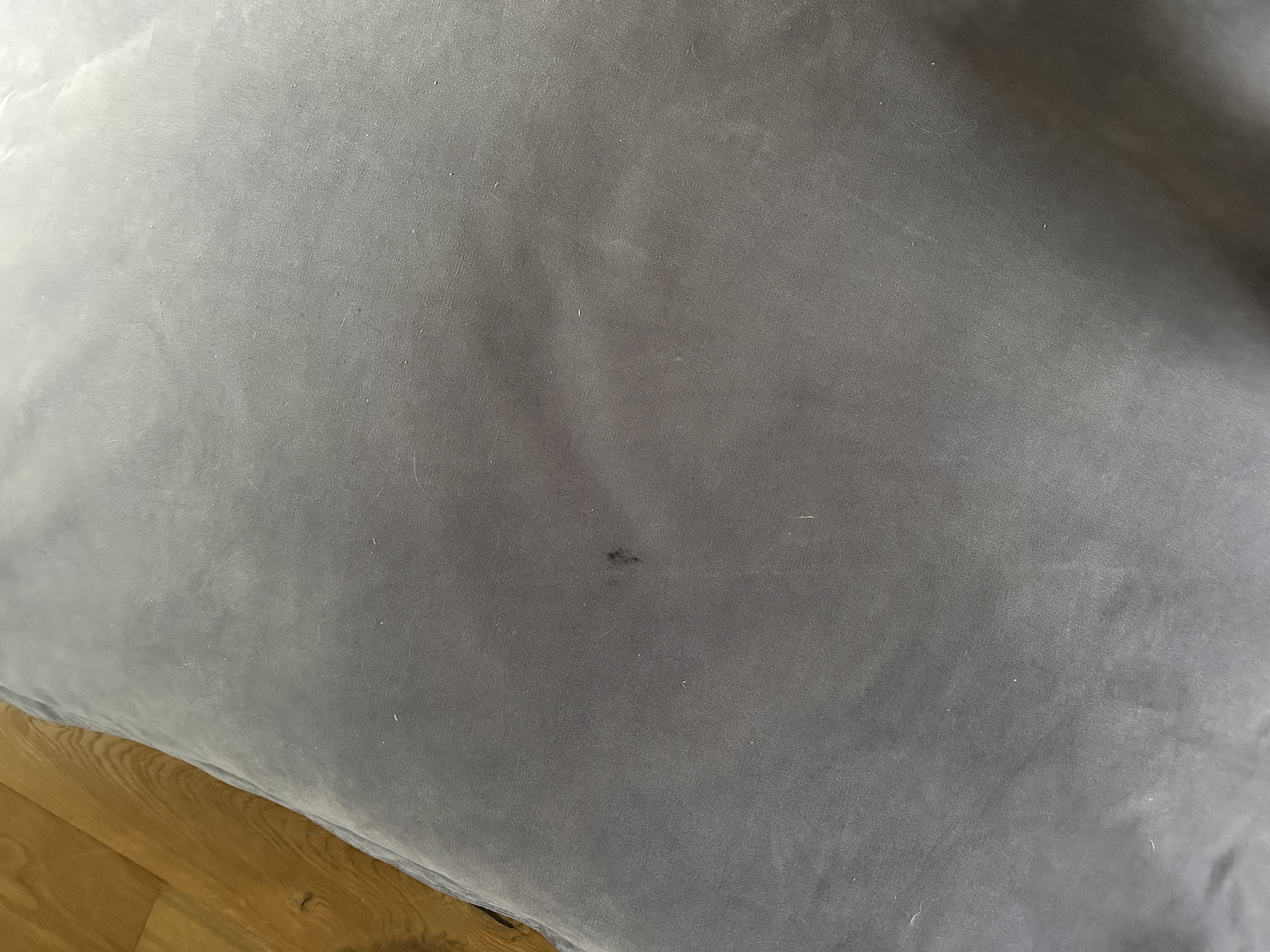 Hij is gebruikt, zie ook foto van vlek op de hoes, maar nog in goede staat. De hoes kan gewassen worden.