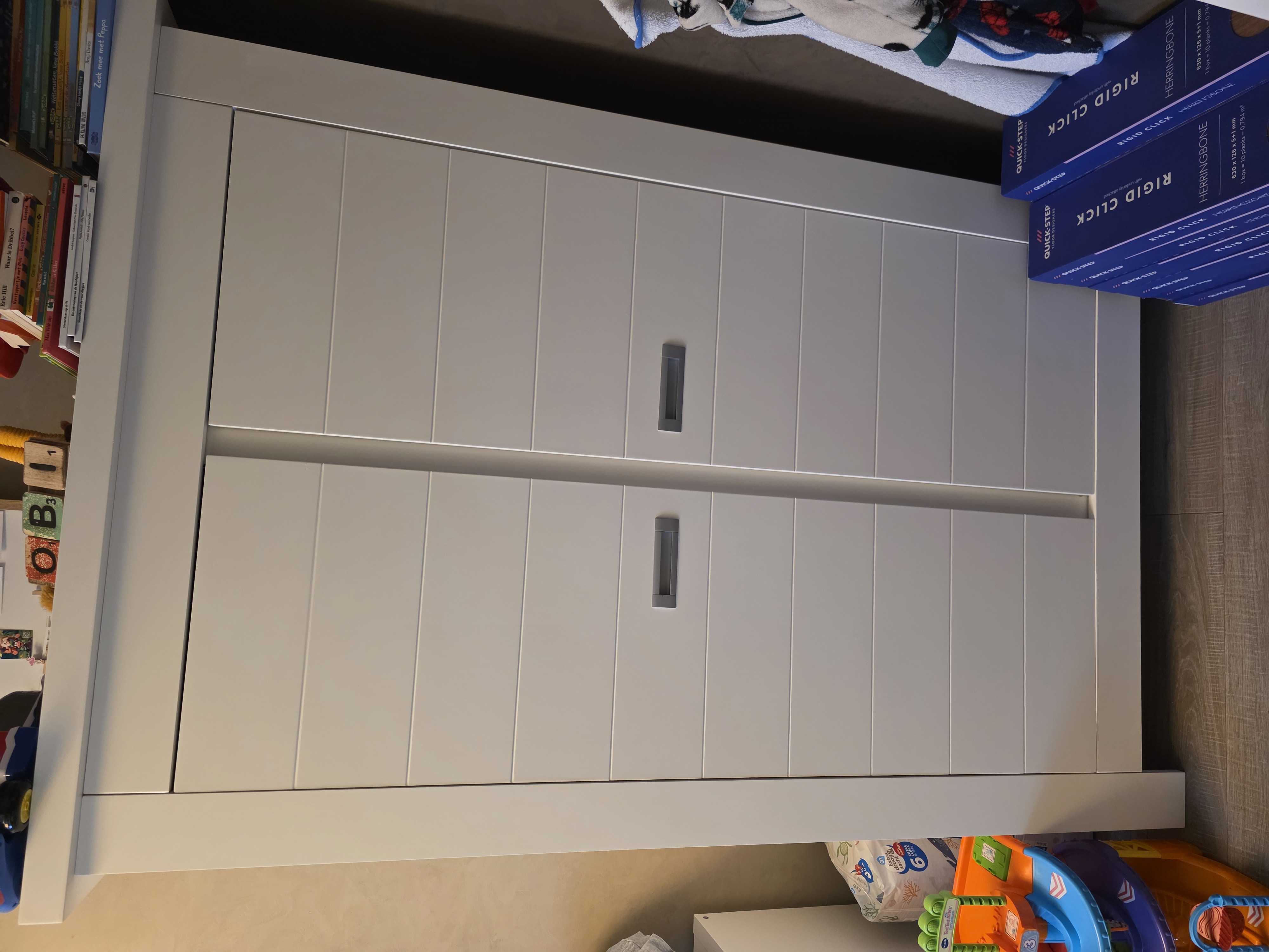 Deze stevige commode en kast kunnen nog prima een ronde mee. Hier en daar wel wat gebruikerssporen maar die vallen niet echt op en degene in het zicht zijn weg te werken met wat type-ex.