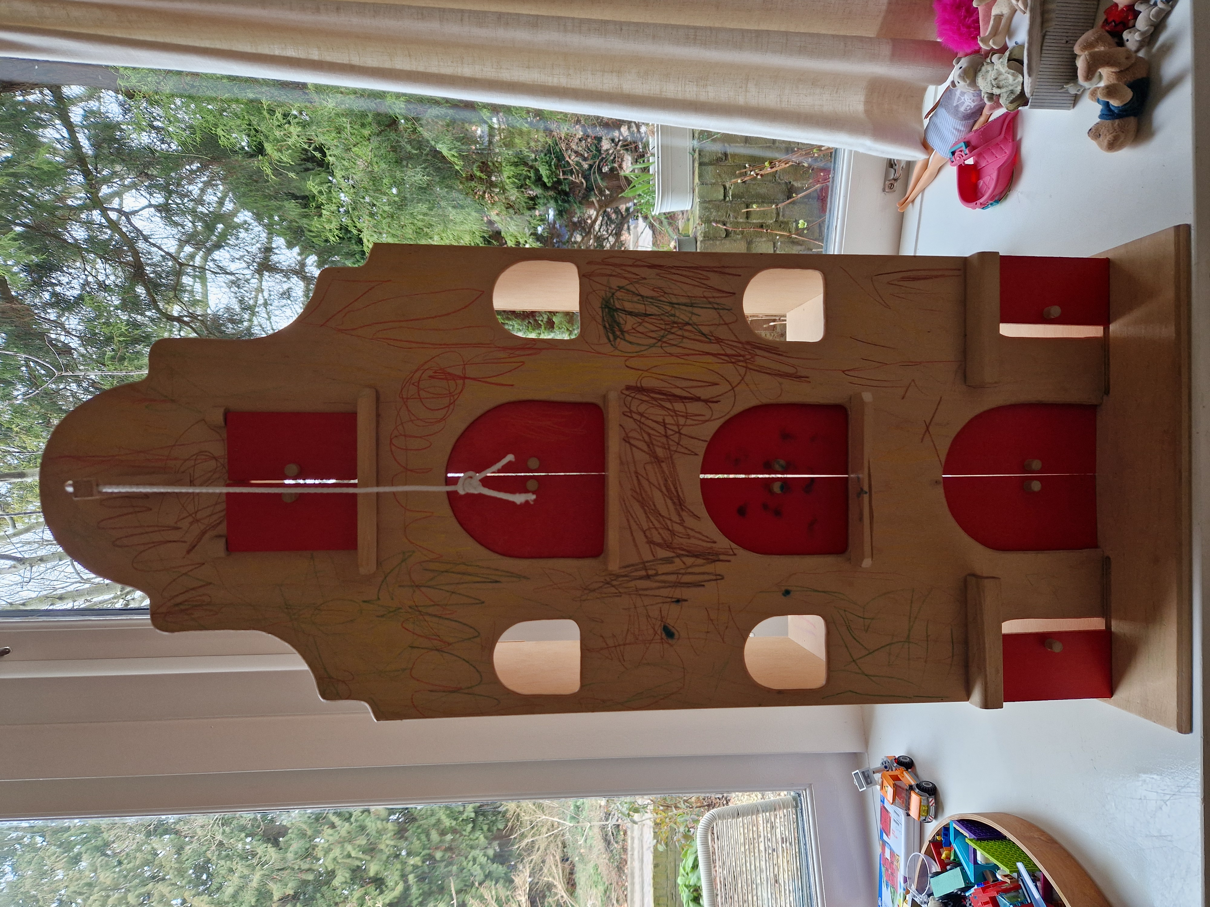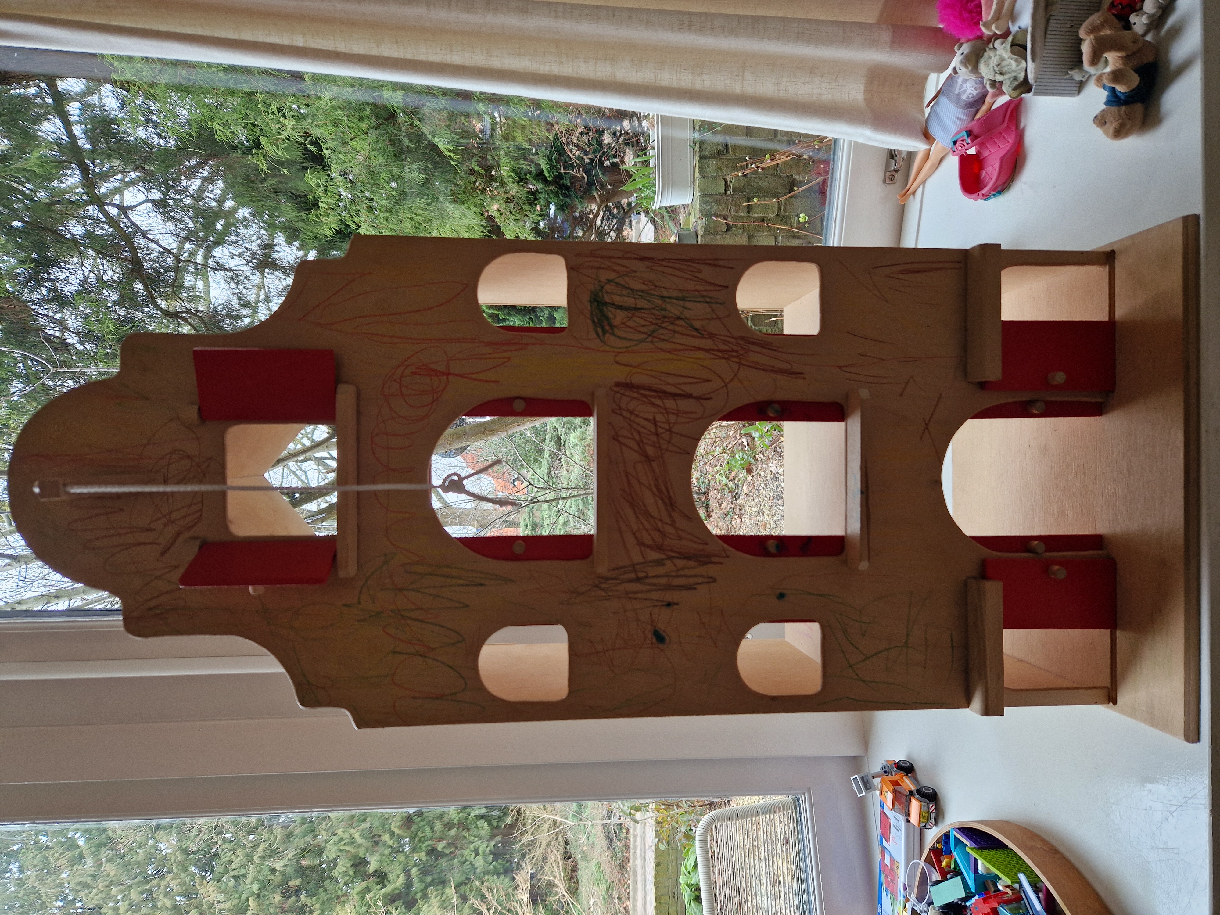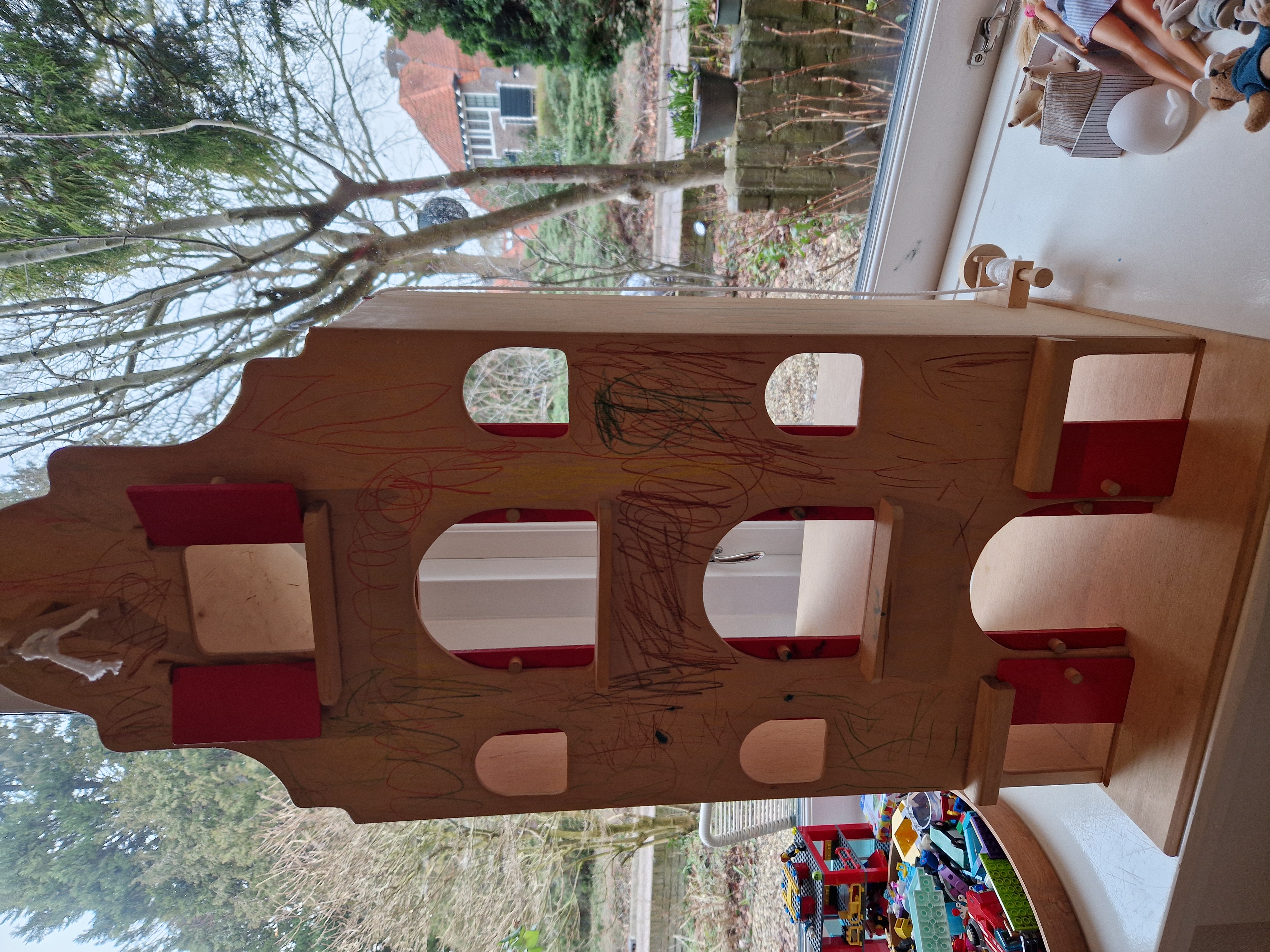 Heel gaaf poppenhuis "artistiek bewerkt" met potlood, oftewel voor de liefhebber die er wat moois van gaat maken. Nieuw was het 125 eur. Poppetjes en meubeltjes krijg je erbij. Alsnog heerlijk spelen, maar wel in gebruikte staat.