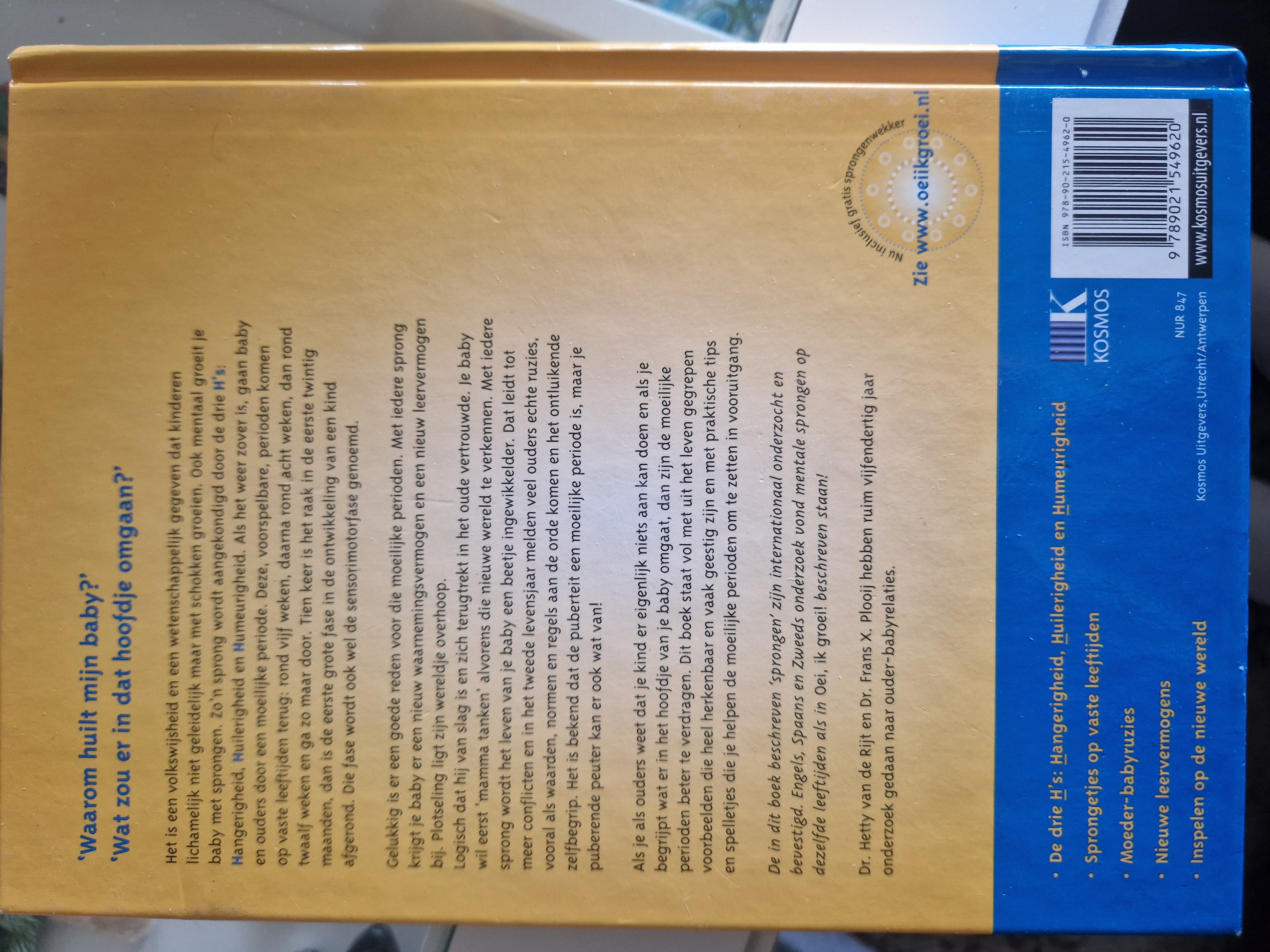 Dit populaire boek, 'Oei, ik groei!', geschreven door Hetty van de Rijt en Frans X. Plooij, beschrijft de tien sprongen in de mentale ontwikkeling van je baby. Het helpt ouders de verschillende fases van hun baby beter te begrijpen, van de 'drie H's' (Hangerigheid, Huilerigheid en Humerigheid) tot nieuwe vaardigheden. Het boek is in goede staat en een onmisbare gids voor elke ouder.